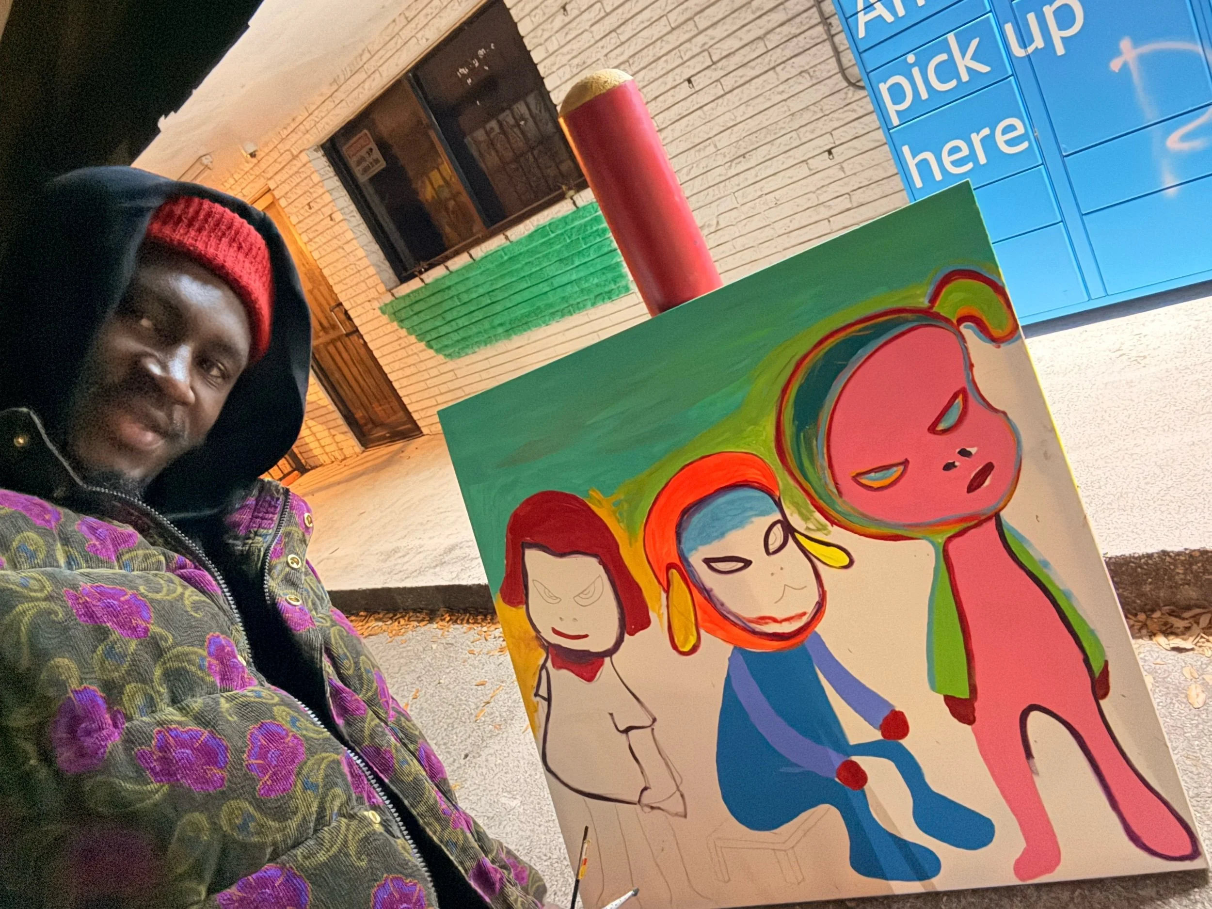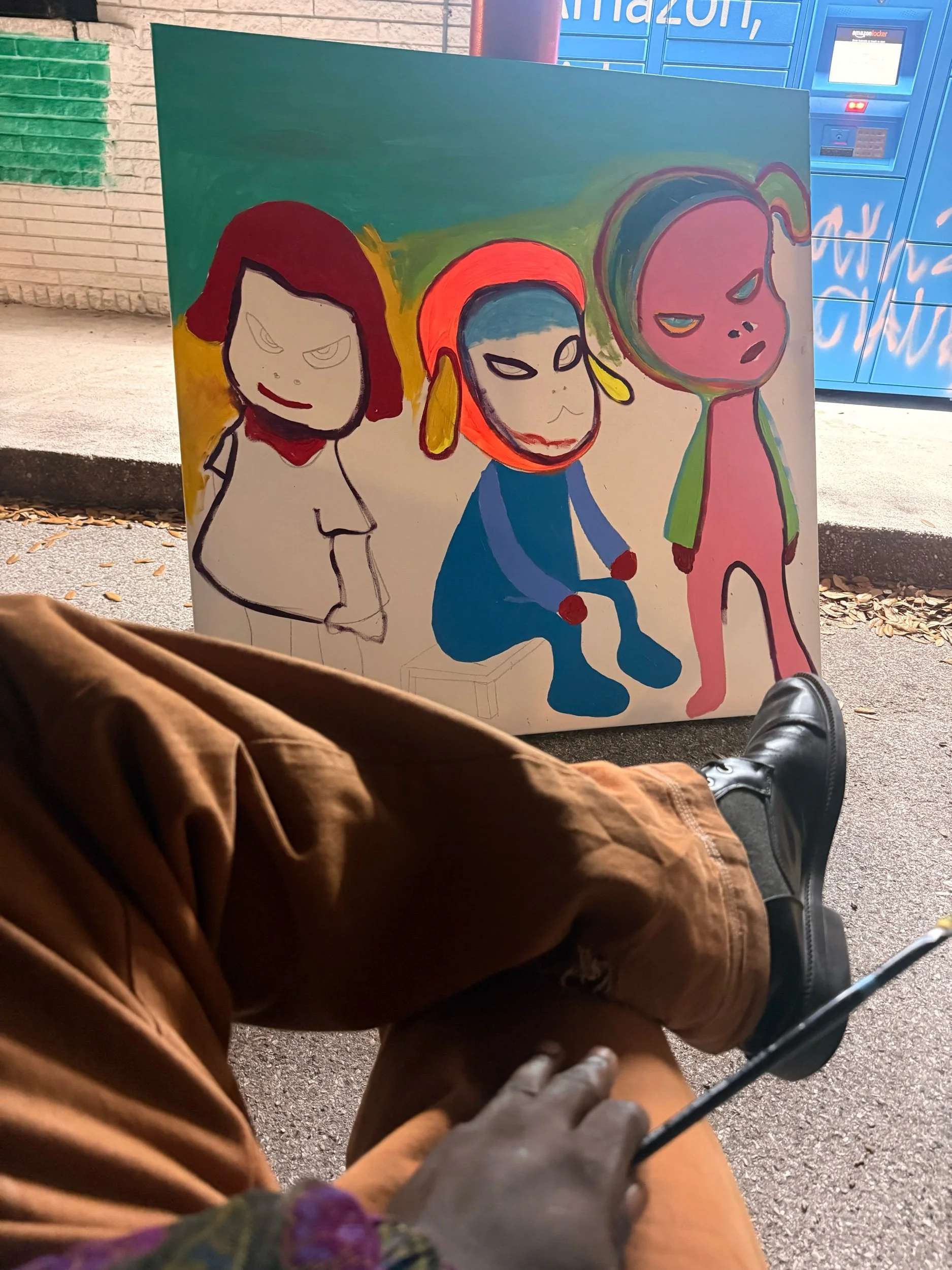 This painting was created through a layered acrylic process, building color, line, and character gradually across the canvas. The figures emerged through intuitive drawing and expressive brushwork, allowing personality and movement to form naturally.